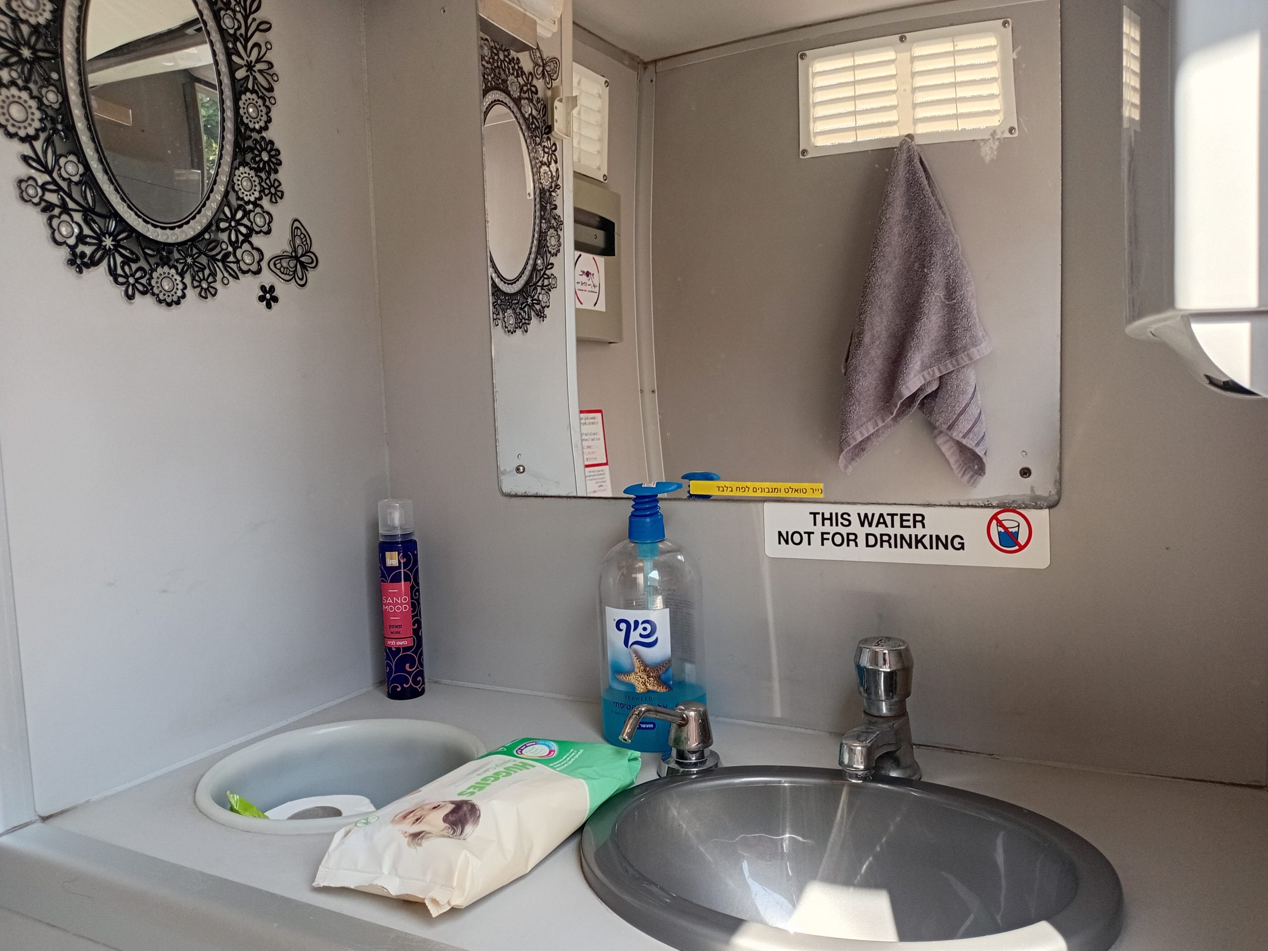 התאים ממוזגים ומאובזרים קומפלט עם כל מה שנחוץ (נייר טואלט, מגבונים ומגבות לידיים).